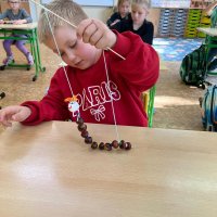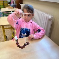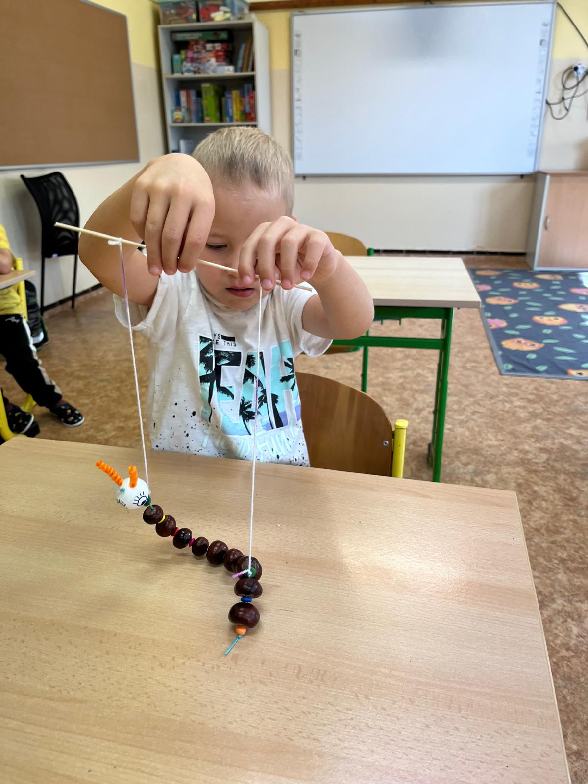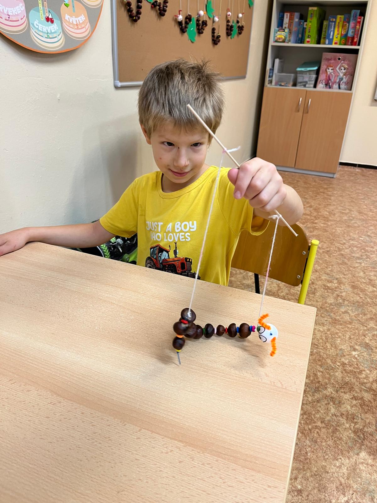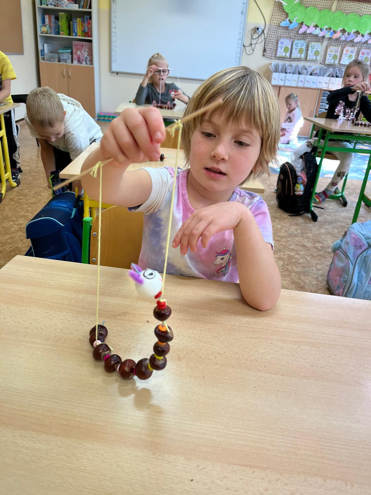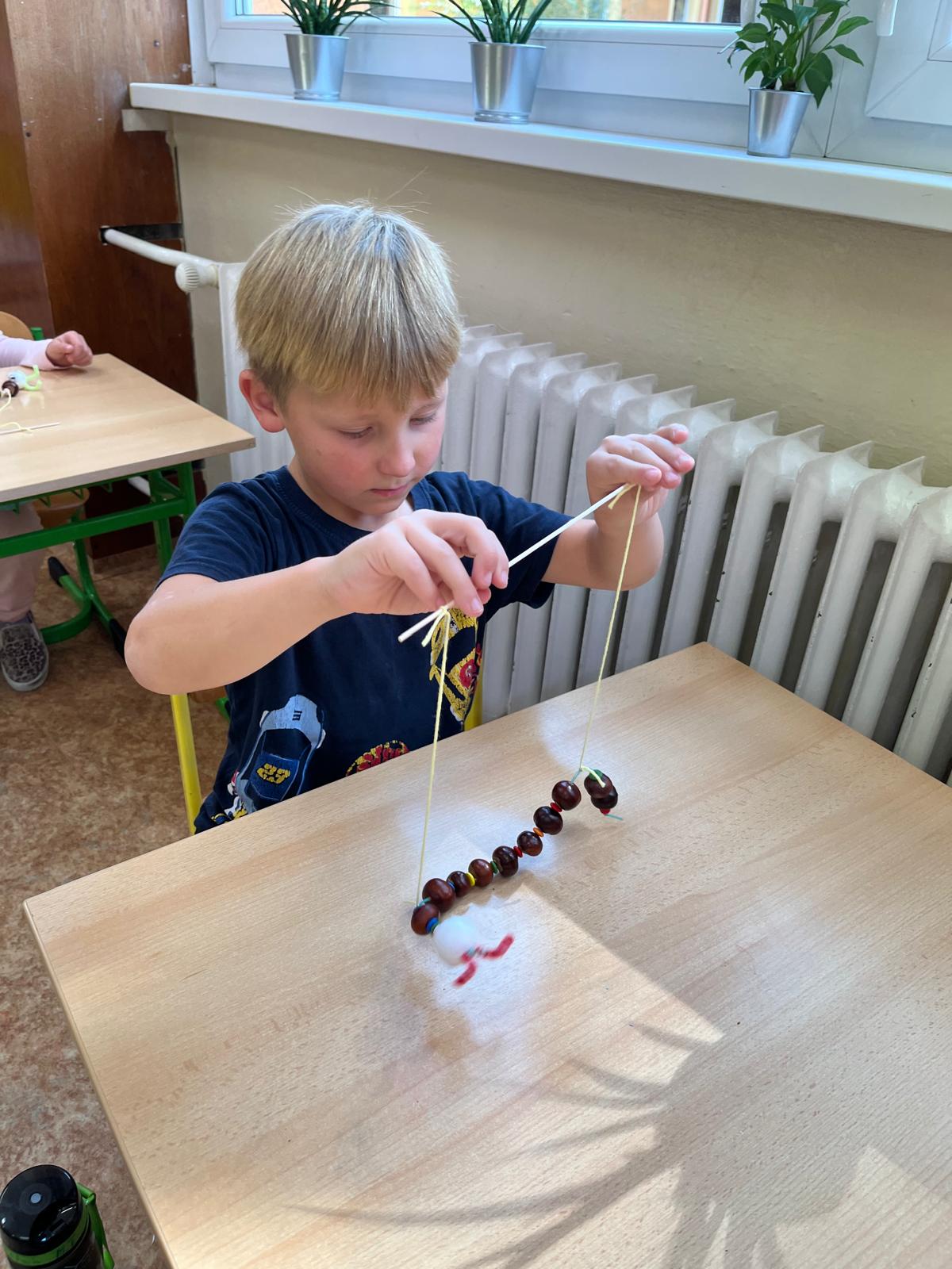 Děti navlékaly kaštany a korálky a vyzkoušely si jak se vodí loutka.