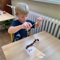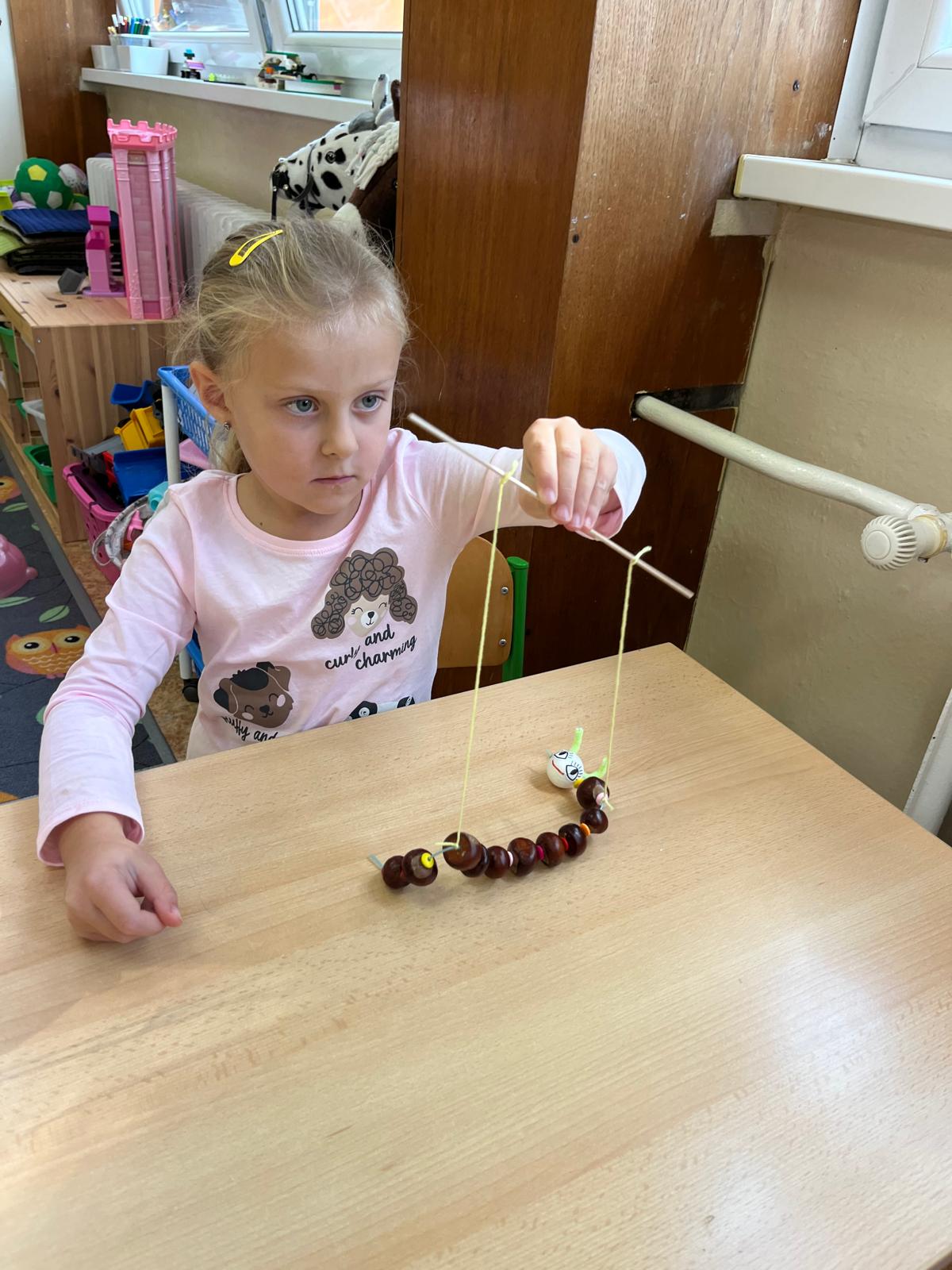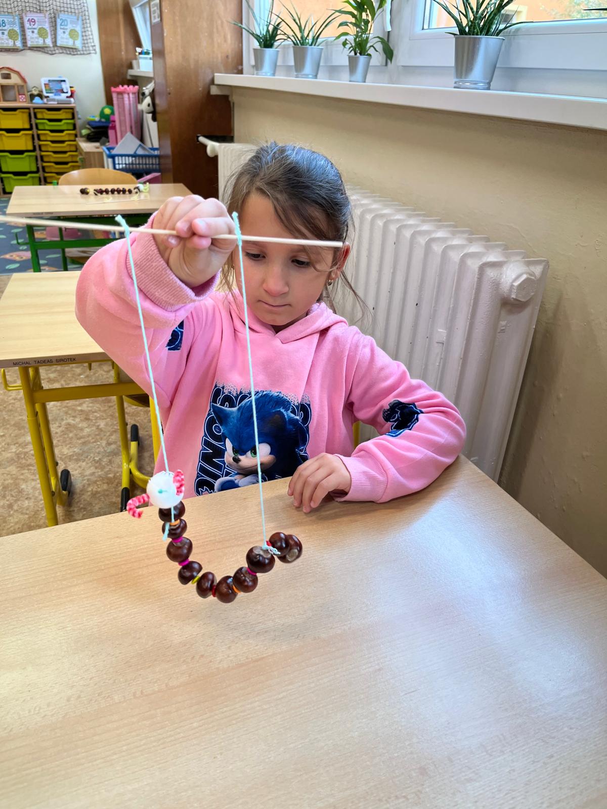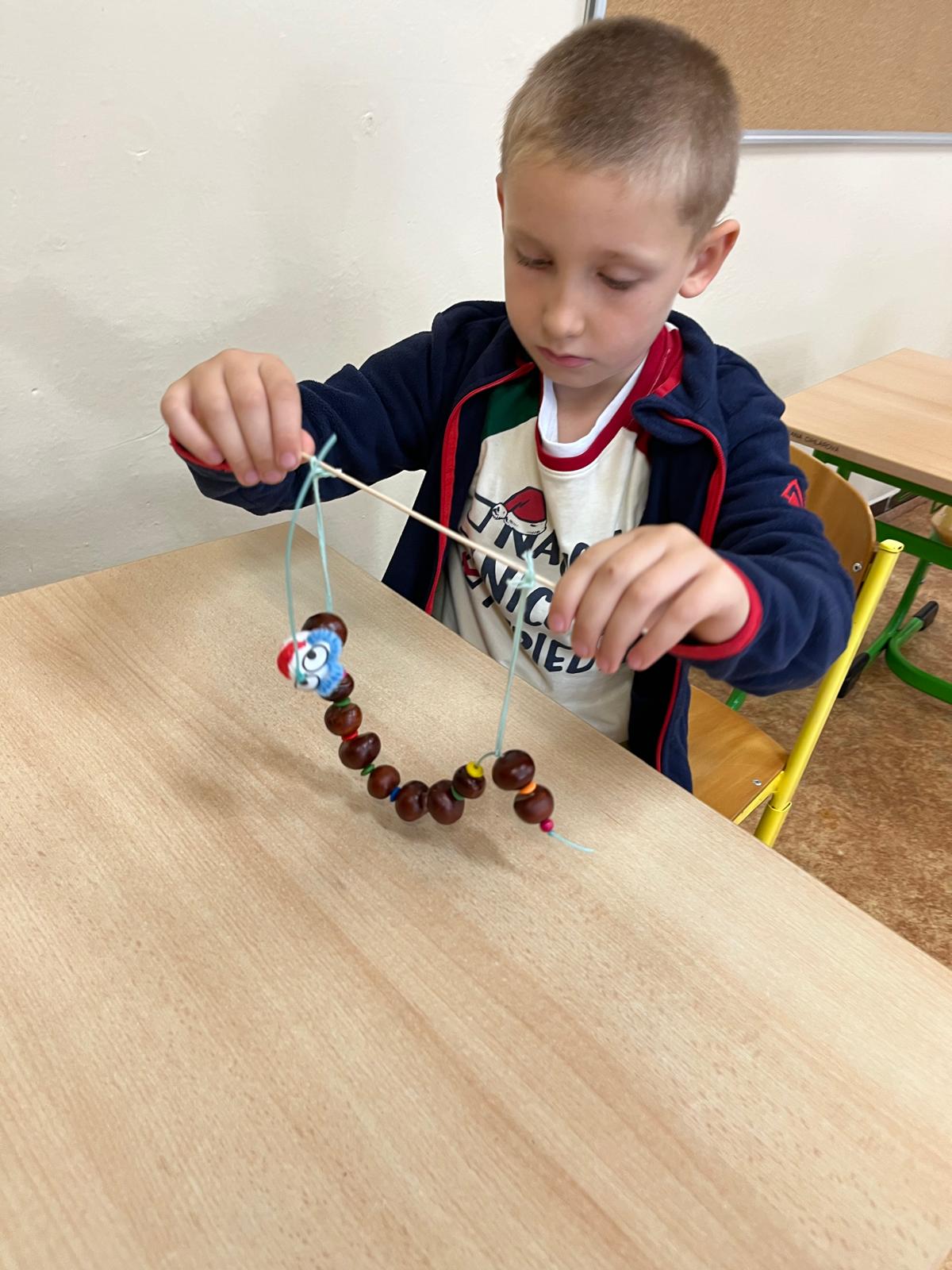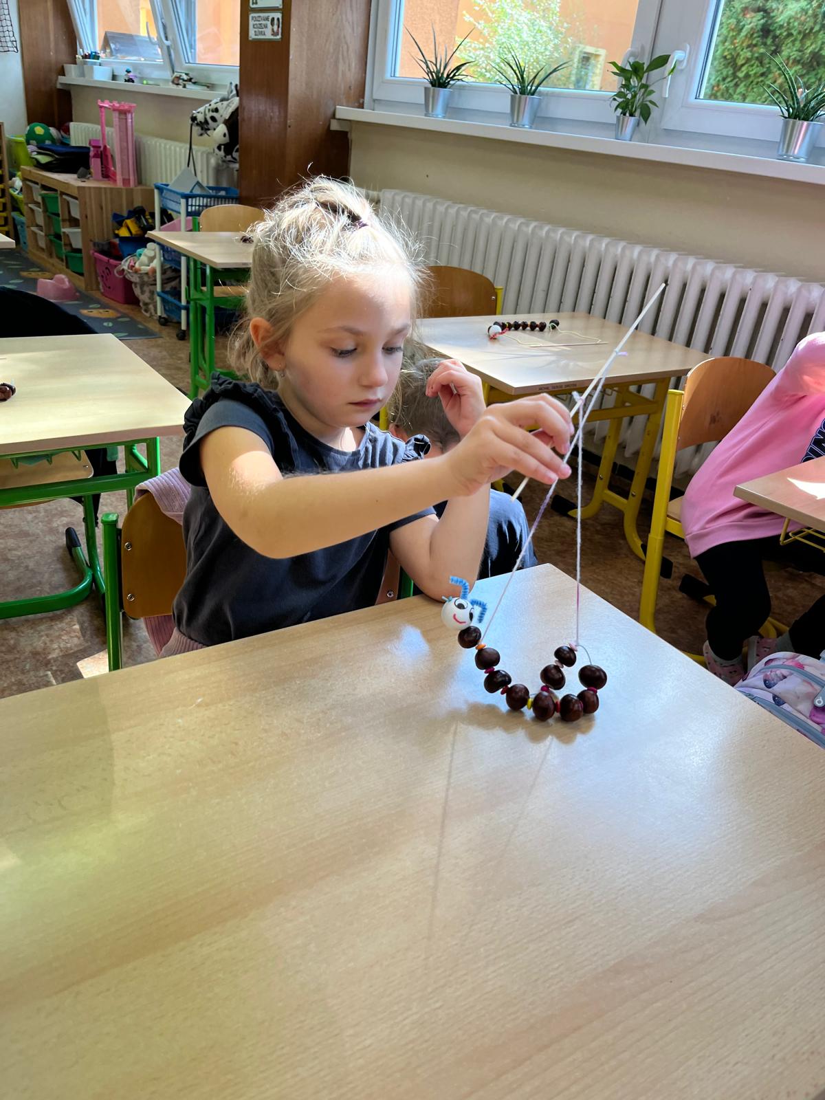 Děti navlékaly kaštany a korálky a vyzkoušely si jak se vodí loutka.