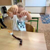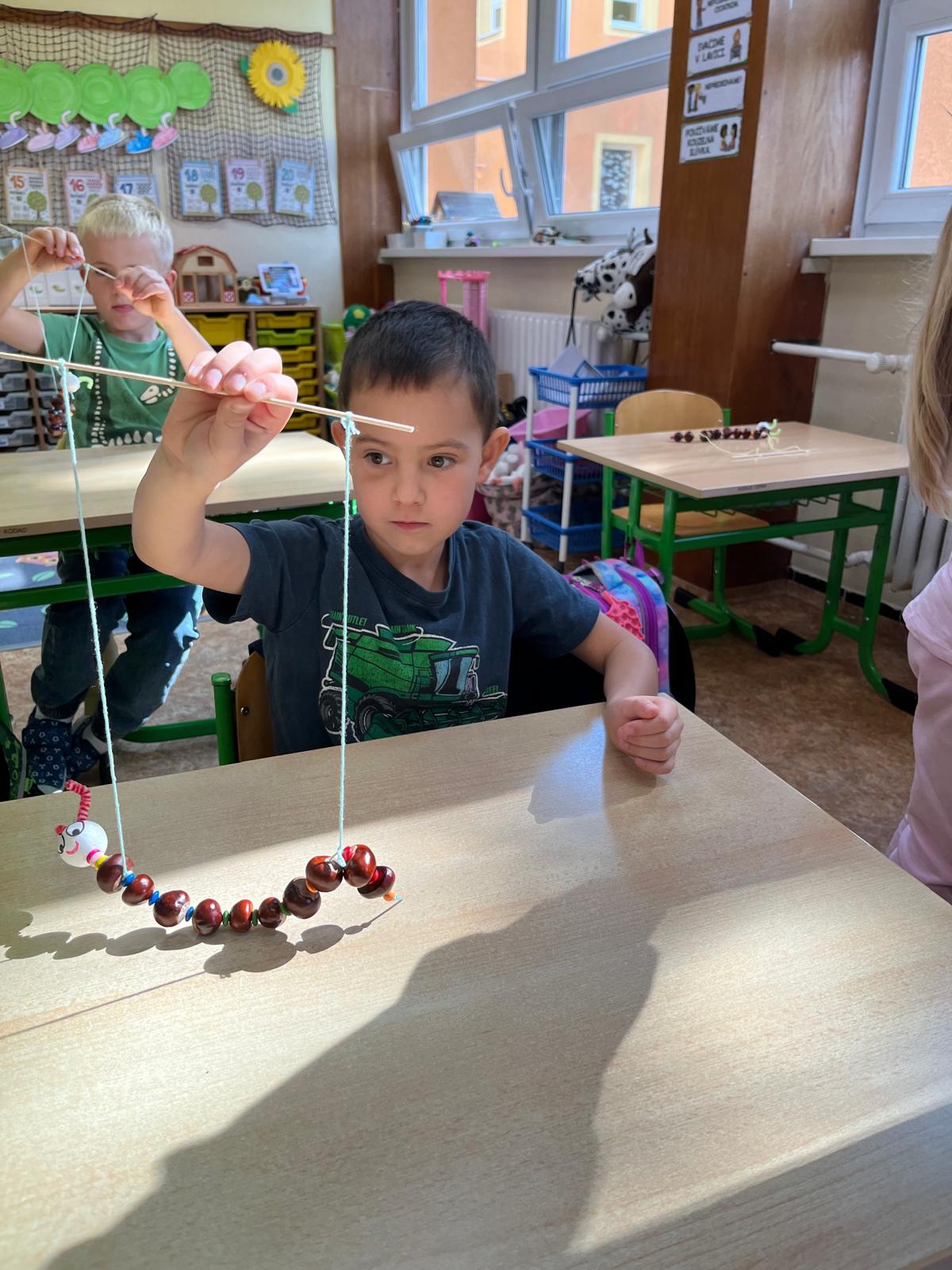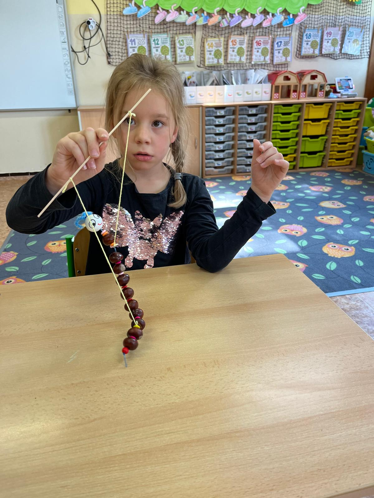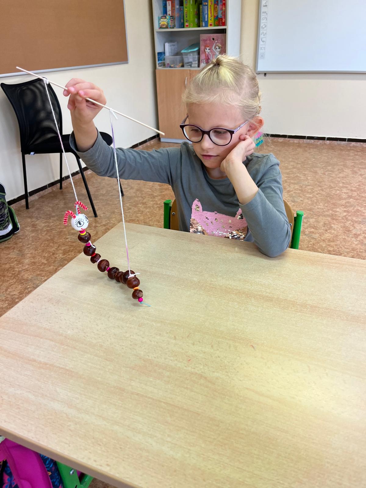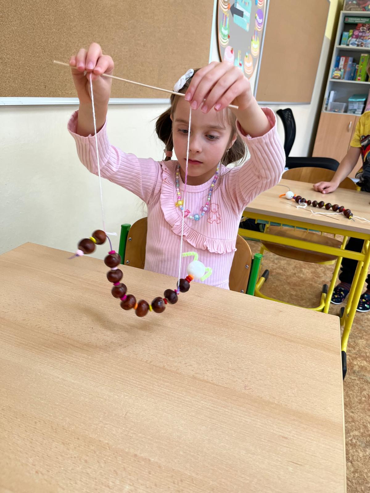 Děti navlékaly kaštany a korálky a vyzkoušely si jak se vodí loutka.