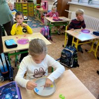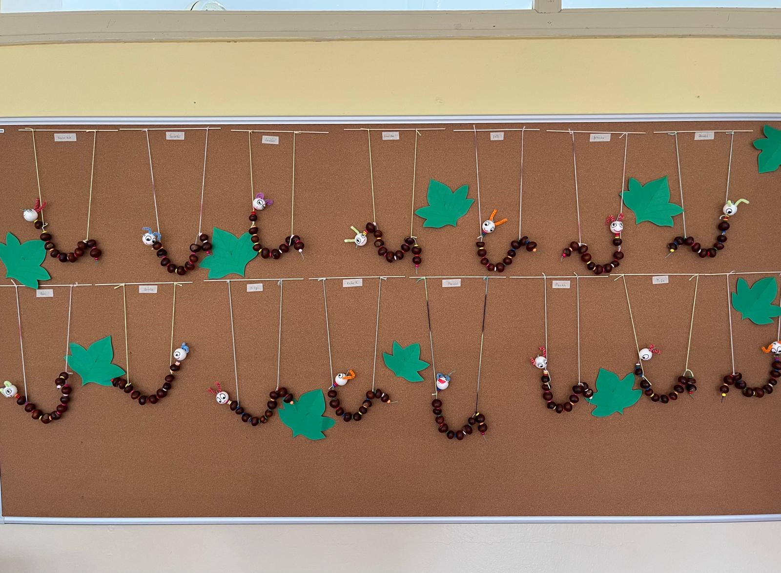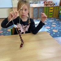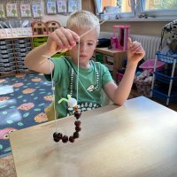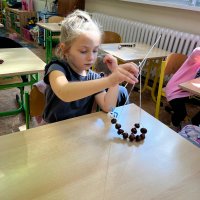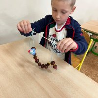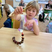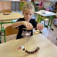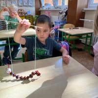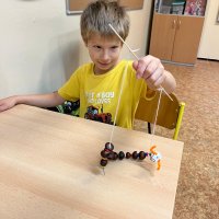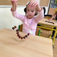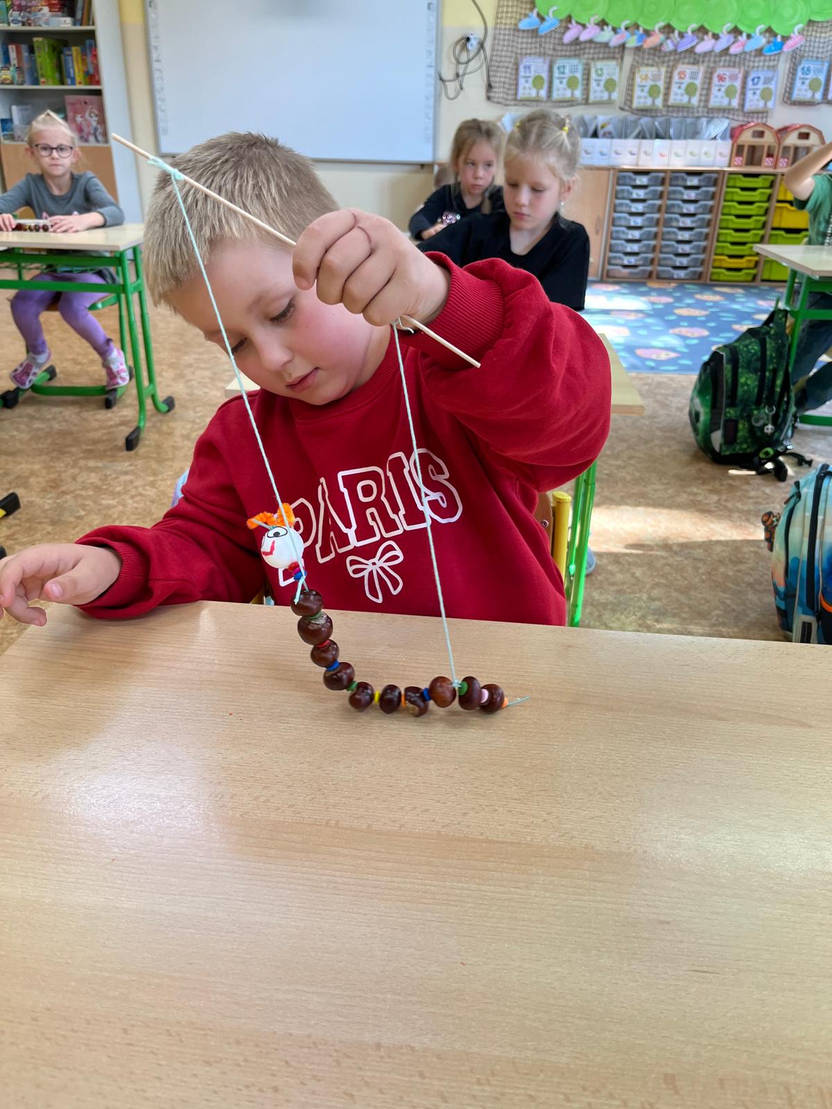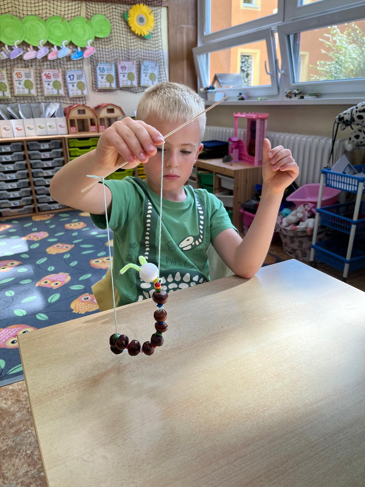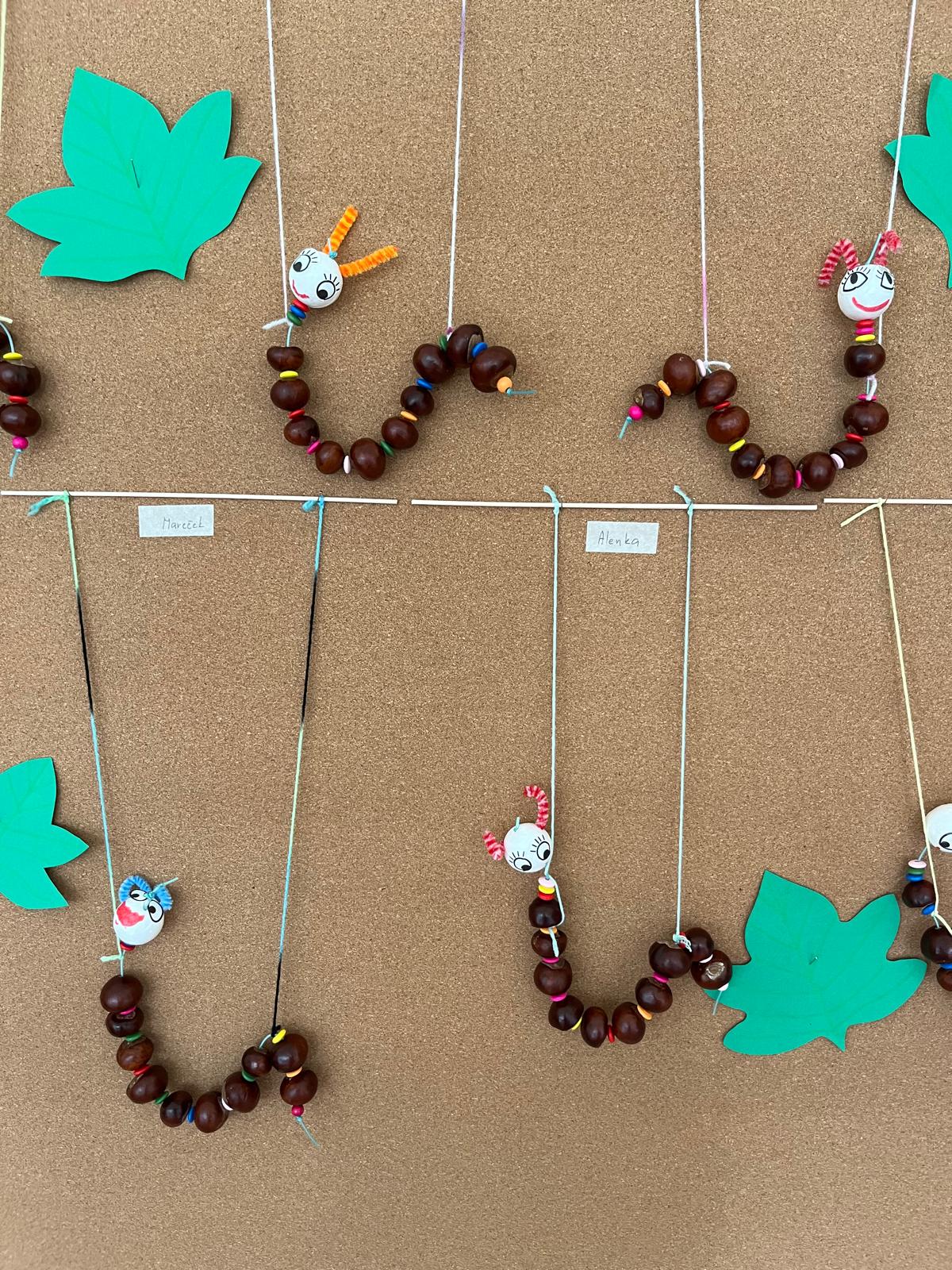 Děti navlékaly kaštany a korálky a vyzkoušely si jak se vodí loutka.